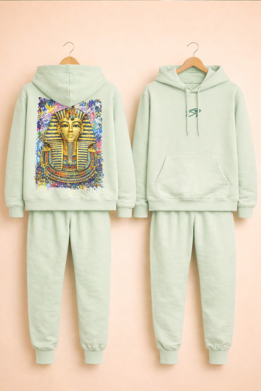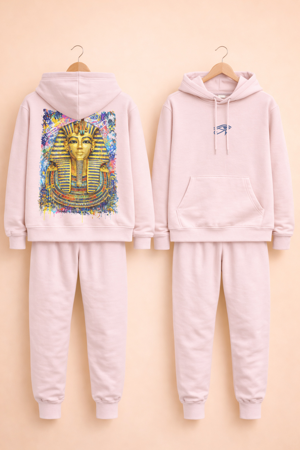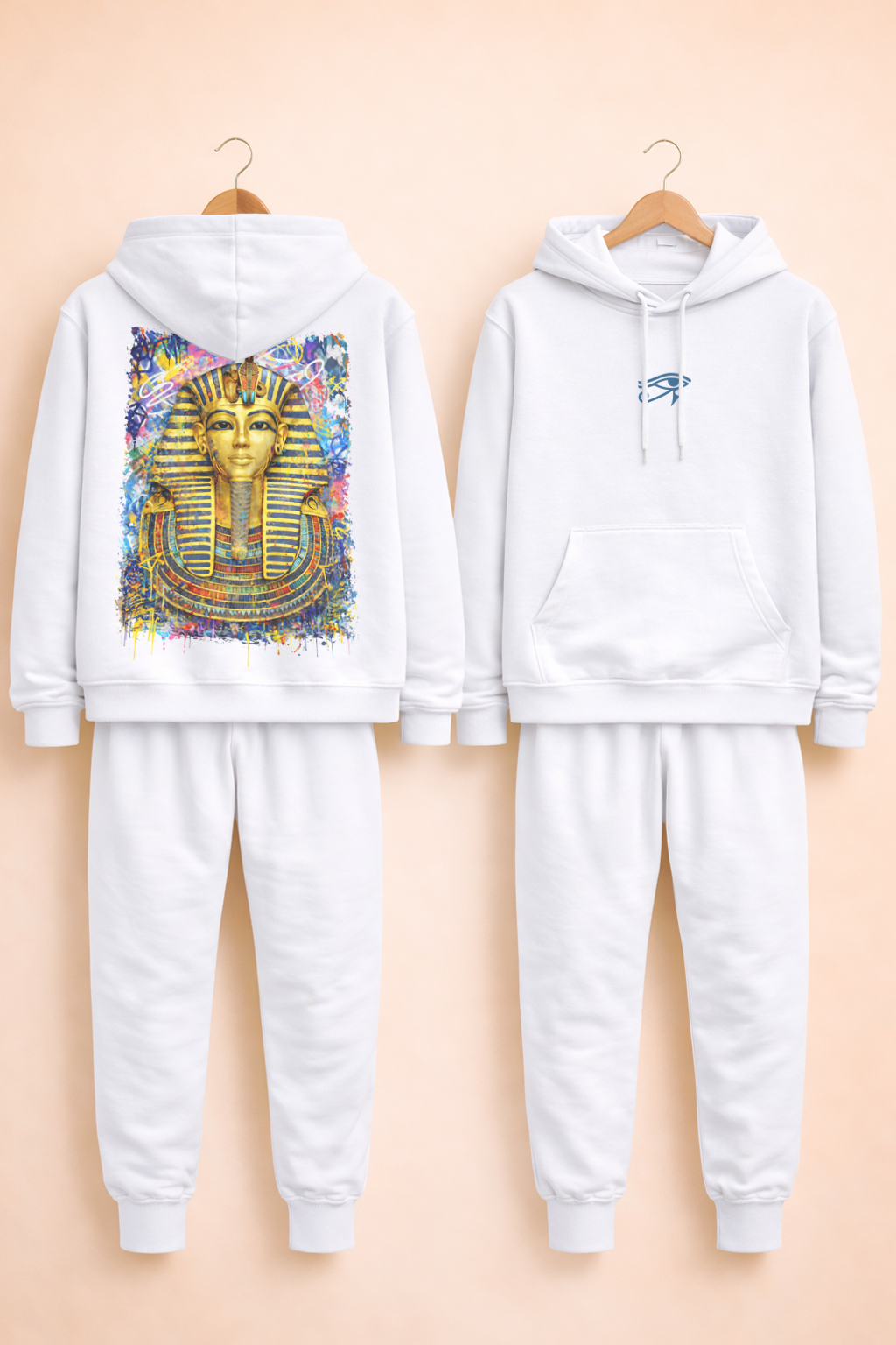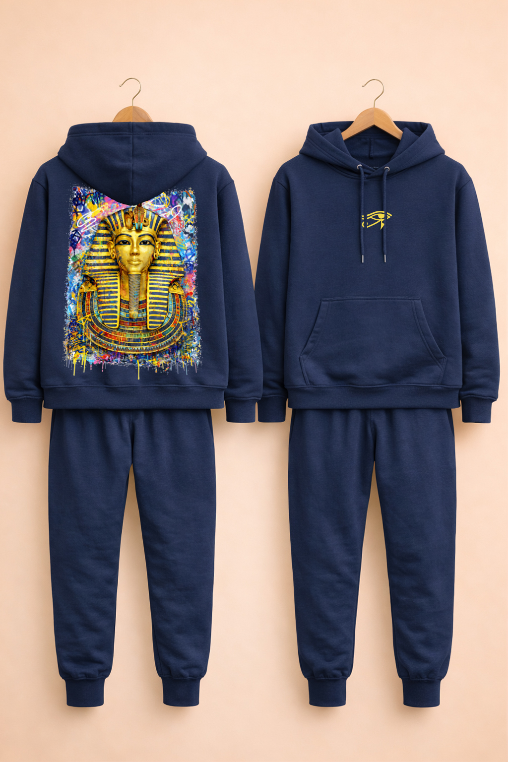 Au dos, un visuel Pharaon grand format (~40×50 cm) en impression DTF haut de gamme, conçu pour une excellente tenue des couleurs