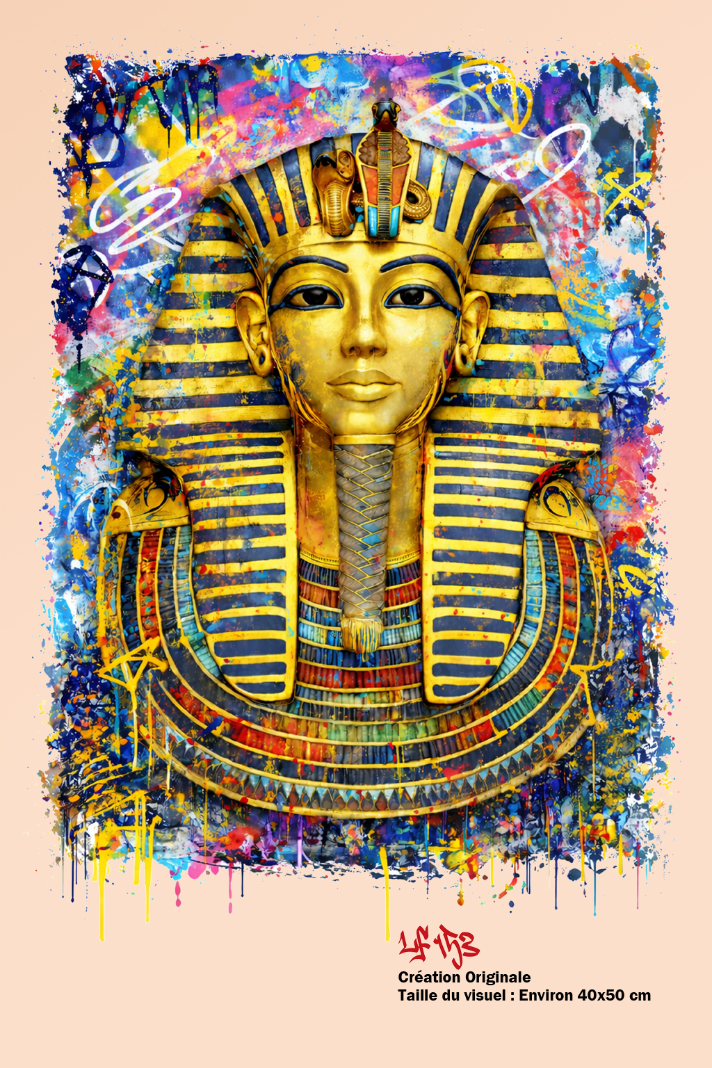 un visuel Pharaon grand format (environ 40×50 cm), riche en détails et en couleurs, pensé comme une œuvre à part entière.